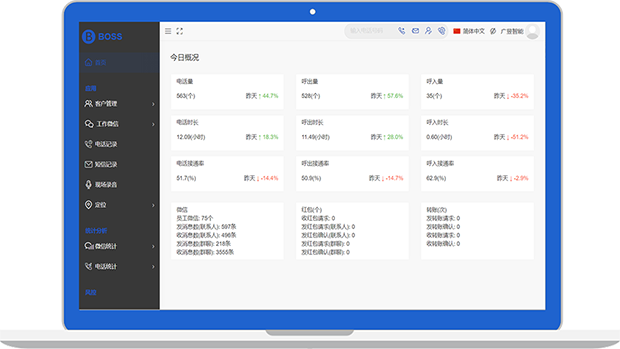 员工通过微信语音视频和客户沟通,自动录音上传保留,沟通数量时长统计