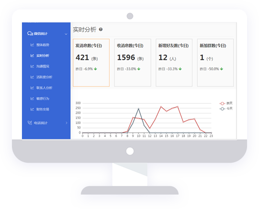 今日电话/电话统计/电话排行/响铃时长分析/电话时长分析/消息数统计/语音视频通话分析/沟通排行