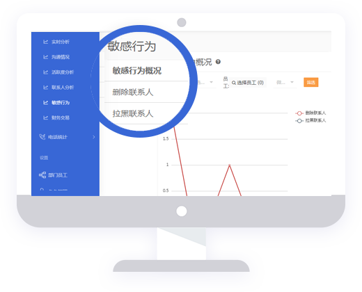 管理员通过后台对员工系统进行权限分配、系统设置、各类违规操作和敏感行为的查看和处理,以及各类数据的统计和分析。